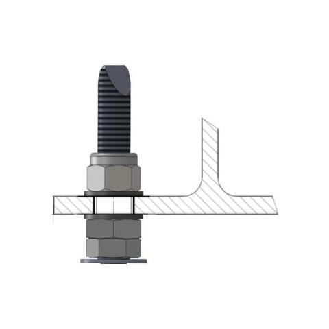 Materiaali ruostumatonta terästä. Syvyys 150 mm. Ulkohalkaisija 24 mm. Paino 1,0 kg. Kehystä varten teräsrakenteeseen porataan halkaisijaltaan 24 mm reikä. Kiinnitetään rakenteeseen mutterilla (sis. toimitukseen). EN795 luokka A ja luokka B.