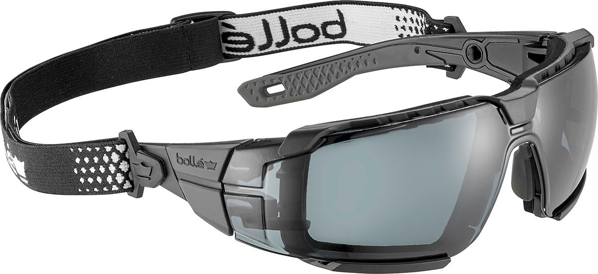 Työkäyttöön suunnitellut, pehmustetulla sekä tuuletetulla kehysrakenteella ja pääremmillä varustetut sankamalliset suojalasit tarjoavat laajan panoraamanäkymän ja erinomaisen käyttömukavuuden. Smoke sävytetyt, PLATINUM-pinnoitetut linssit kestävät naarmut ja huurtumisen, kun taas non-slip-pinnoitetut, muotoon valetut sangat pitävät lasit tukevasti paikoillaan vaativissakin työasennoissa. Pehmeät, nenän muotoihin mukautuvat nenätyynyt viimeistelevät täydellisen istuvuuden. Ulkokäyttöön.