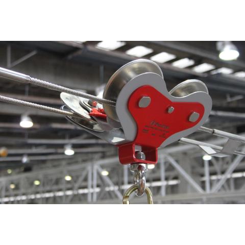 Henkilösuojainten kiinnityspisteenä toimiva liukuvaunu liikkuu erittäin herkästi, myös välivarmistuspisteiden ohi.