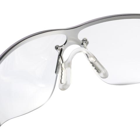 Metallikehyksiset Flex-sangoilla ja kirkkailla linsseillä varustetut suojalasit työkäyttöön. FLEX 160° -sankarakenteessa sangat avautuvat yli normaalin auki-asennon, joten päähän laittaminen ja pois ottaminen on helppoa ja lasit istuvat myös leveään päähän. Pään muotojen mukaan muotoiltavat Non-slip TIPGRIP-sangat varmistavat istuvuuden ja käyttömukavuuden.
