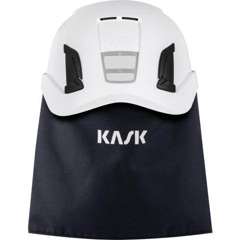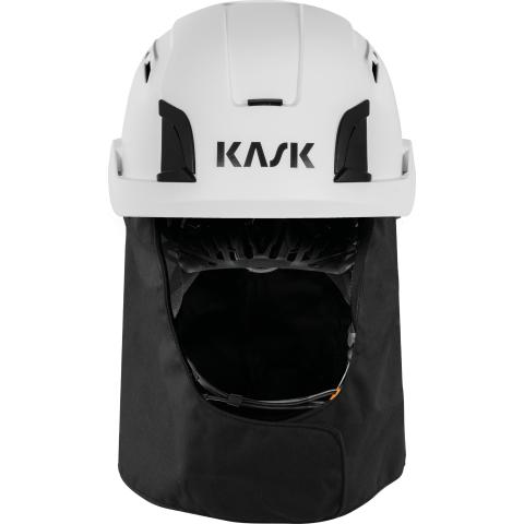 Palosuojattu ja kemikaaleilta sekä valokaarelta suojaava niskasuojusKask Primero, Zenith X ja Zenith X MAX -sarjojen työkypäriien takahelmaan. Helposti kypärässä oleviin kiinnityskoloihin napsauttamalla kiinnitettävä malli, joka suojaa niskaa ja korvalehtiä kuumuudelta, liekkikosketukselta, useilta haitallisilta kemikaaleilta, tuulelta, vesisateelta, lumisateelta, puupurulta, roiskeilta jne. Tarjoaa myös kattavaa suojaa kypärän hihnastolle ja sisäosille hitsauskipinöiltä ja muilta uhkilta.