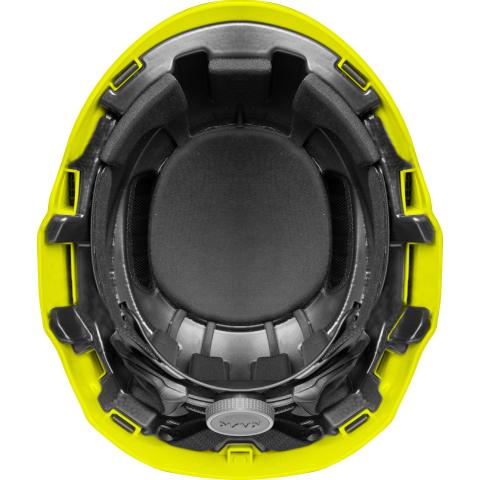 Hihnasto pitää kypärän päässä vaikeissakin työasennoissa. Hihnaston laajojen säätöjen ansiosta hyvä yhteensopivuus kuulonsuojainten kanssa. Pään muotojen mukaan mukautuva Adaptive Fit -säätö, jonka ansiosta pääpanta muotoutuu niskan alueella täydellisesti pään muotojen mukaan. Soveltuu 53-63 cm pään ympärysmitalle, ja mitoitus säädettävissä lisäksi korkeuden ja niskaosan kulman osalta. Leukahihnassa Ring To Hook -lenkki, jonka avulla kypärän voi kiinnittää pelastusasuun tai varustereppuun, kun se ei ole päässä. Leukahihnan materiaali paloturvallinen akryyli, joka ei sula ja on itsestään sammuva ilman liekkikosketusta.