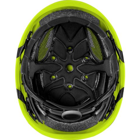 Erittäin kevyt ja tuuletettu työkypärä monipistehihnastolla. Paino vain 390 g! Huomiovärinen malli tehdasasennetuilla havaittavuutta parantavilla heijastintarroilla, sekä jälkihohteisilla otsavalaisinklipseillä. Erinomaisen istuvuuden, käyttömukavuuden ja helpon lisävarusteliitettävyyden tarjoava ergonominen malli, jonka säätäminen onnistuu yhdellä kädellä.
