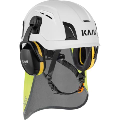 Kaikkien Kask työkypärien kanssa yhteensopiviksi sertifioidut matalaprofiiliset dielectric kuulonsuojaimet matalan/keskitason vaimennusarvolla ja 30 mm Euroslot kiinnikkeillä. Helppo kiinnittää sekä irrottaa työkaluvapaasti kaikista Kask kypäristä.