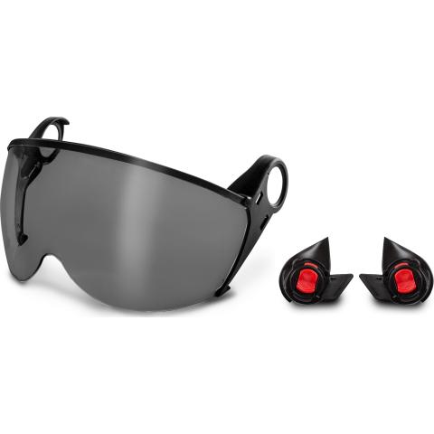 Valmis setti, jossa Kask Zen Visor smoke kevyesti tummennettu silmiensuojain (WVI00038-510), sekä Zenith Visor Adapters EasyClick pikakiinnikepari (WAC00009-) silmiensuojaimelle. Soveltuu kaikille Kask Zenith X ja Primero -sarjojen työkypärille.