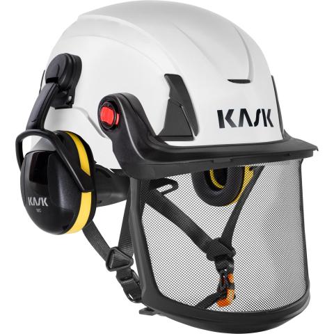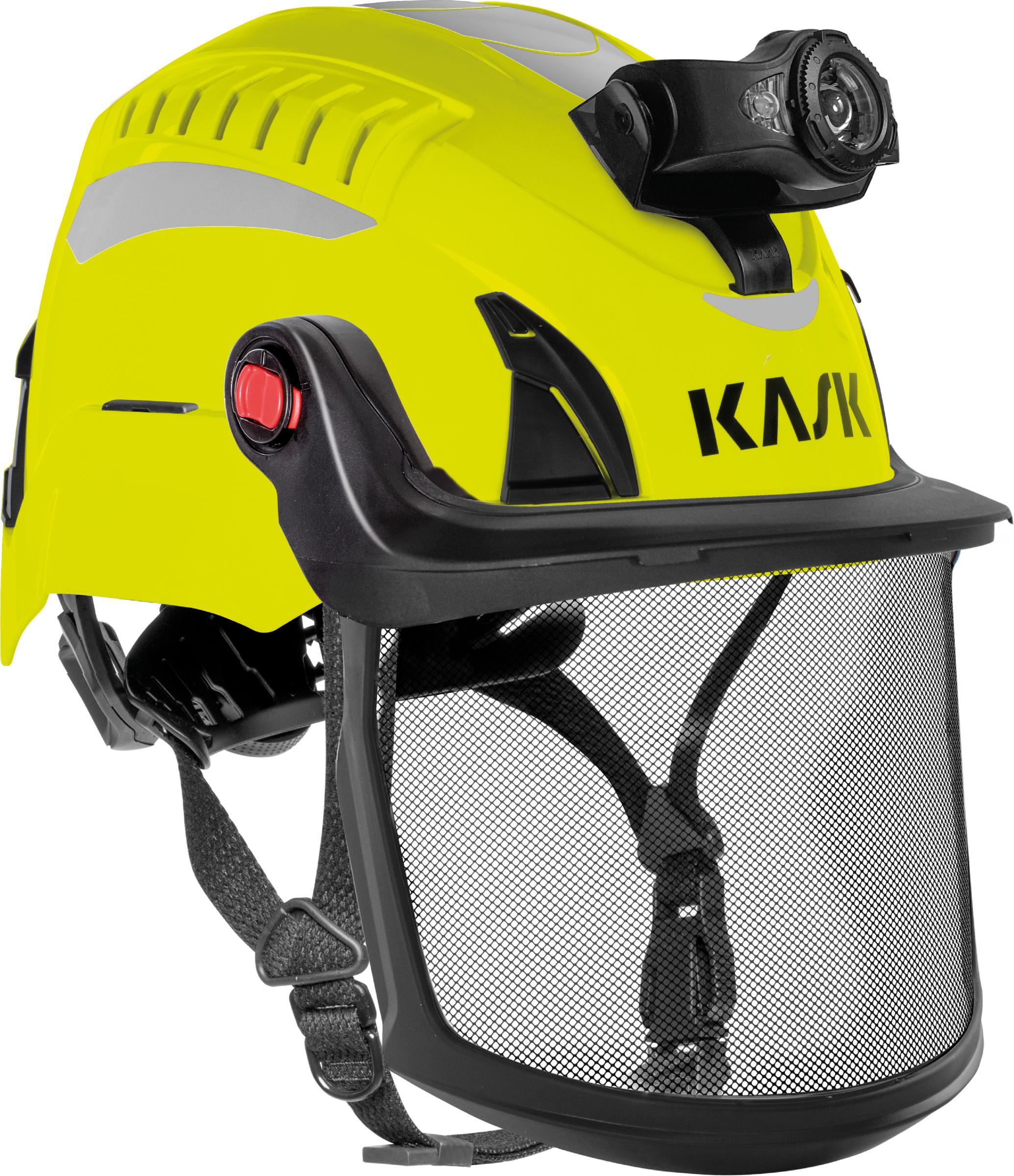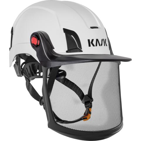 Valmis setti, jossa kevyt Kask Zen MM Metal Mesh Visor metalliverkkovisiiri (WVI00046-), Zen FF Visor Carrier yläkehys (WAC00010-), sekä Zenith Visor Adapters EasyClick pikakiinnikepari (WAC00009-) kehyksen kiinnittämiseksi Kask Zenith X, Zenith X MAX ja Primero -sarjojen työkypäriin. sekä Quantum -sarjan pelastuskypäriin.