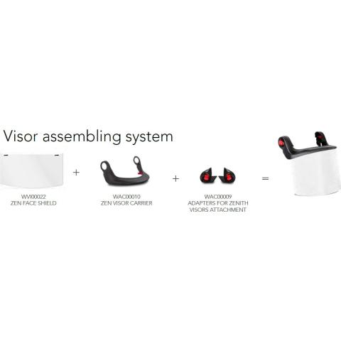 Kirkas ja erittäin kevyt kokokasvosuojain Kask Zenith X ja Primero -sarjojen työkypäriin. Kiinnitetään kypärään erikseen tilattavalla Kask Zen Mount Kit kiinnikepakkauksella (WKI00009-), jossa Zen FullFace Visor Carrier yläkehys ja EasyClick pikakiinnitysadapterit. Visiirin uusiminen on näin kustannustehokasta ja ympäristöystävällistä.