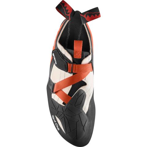 In order to achieve these properties, the MYSTIX features a midsole which was specially developed using CAD Software. In addition, the strong downturn optimally supports the foot muscles in steep terrain. The crossed Velcro strap closure system permits individual adjustment with one quick pull. The MYSTIX is quick to take on and off without compromising on performance. In order to achieve even more feeling when stepping onto a hold, the toe area has been designed to be particularly soft. Additionally, the shoe features an extra sensitive Vibram XS Grip sole (4.0 mm). The toe area is made partially from leather, so that this part adjusts even more to the individual toe shape.