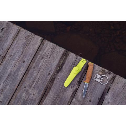 Kelluva sileäteräinen puukko offshore työkäyttöön, kalastusammattilaisille, pelastuskäyttöön, melojille, purjehdukseen, virkityskalastukseen ja muille jotka viettävät aikaa veden ääressä. Soveltuu monipuoliseen yleiskäyttöön. Kahvan ja tupen kirkkaan lime väri tekee havaitsemisesta helppoa. Esim. kalanviljelyaltailla uppoava puukko voi aiheuttaa huomattavia kustannuksia, joten kelluvuudella voi olla myös taloudellinen ulottuvuus.