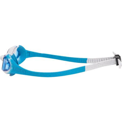 Uimalasit 2-6 vuotiaille sinisillä linsseillä. Turvalliset Uv-suojalinssit ja pehmeät hypoallergiset silikonitiivisteet. Mukavat käyttää yksiosaisen hihnan ja takana olevan säätösoljen ansiosta. Nenäsilta mukautuu käyttäjän kasvoihin. Hyvä istuvuus estää veden pääsyn silmiin. Huurtumisen estävä käsittely lasipinnoilla. PVC-vapaa. 33 % kierrätetty silikoni, 15 % kierrätetty polykarbonaatti.