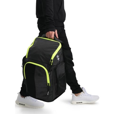 Tilava ja käytännöllinen reppu, jossa on omat lokerot uintivarusteille sekä vahvistettu pohja märkiä lattioita varten. Ylhäältä täytettävä päälokero, kolme vetoketjullista taskua, verkkotaskut sivuilla ja erillinen uimalaukku märille vaatteille. Pehmustettu, hengittävä selkäosa ja ergonomiset olkaviilekkeet tekevät repusta mukavan kantaa.