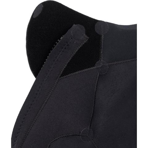 Märkäpuvun ohut kaula-aukko on pehmeää, hiertämätöntä materiaalia. Selänpuolella perinteinen, alhaalta ylös sulkeutuva vetoketju on tiivis sekä helppo avata ja sulkea. Kaksinkertaisella ompeleella ommellut saumat ovat kestäviä ja täysin vesitiiviitä. Sisäpuolella polyesterivuori.