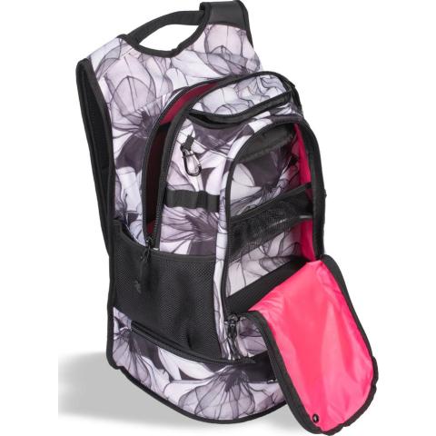 Repussa on jokaiselle tavaralle oma paikkansa; kaksi isompaa lokeroa varusteille sekä kolme pienempää vetoketjutaskua pientavaroille. Isoimmassa lokerossa on riittävästi tilaa myös suurille varusteille, kuten uimalaudalle. Repun alaosan omaan taskuun mahtuu jopa kaksi paria kenkiä. Mukaan tulee erillinen uimapussi märille vaatteille ja varusteille.
