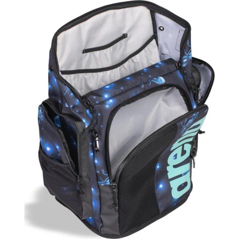 Tilava ja käytännöllinen reppu, jossa on omat lokerot uintivarusteille sekä vahvistettu pohja märkiä lattioita varten. Ylhäältä täytettävä päälokero, kolme vetoketjullista taskua, verkkotaskut sivuilla ja erillinen verkkotasku märille vaatteille ja varusteille. Pehmustettu, hengittävä selkäosa ja ergonomiset olkaviilekkeet tekevät repusta mukavan kantaa.