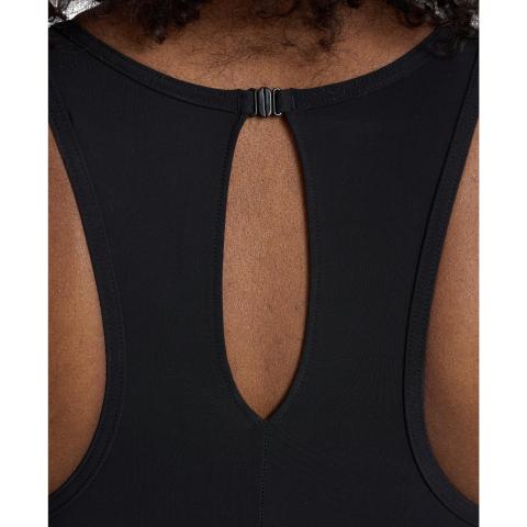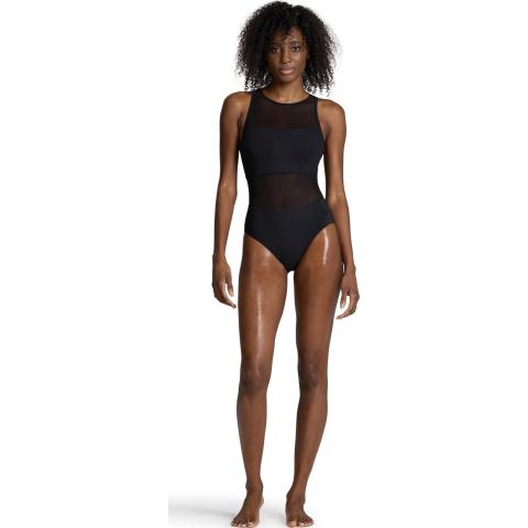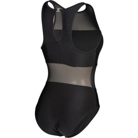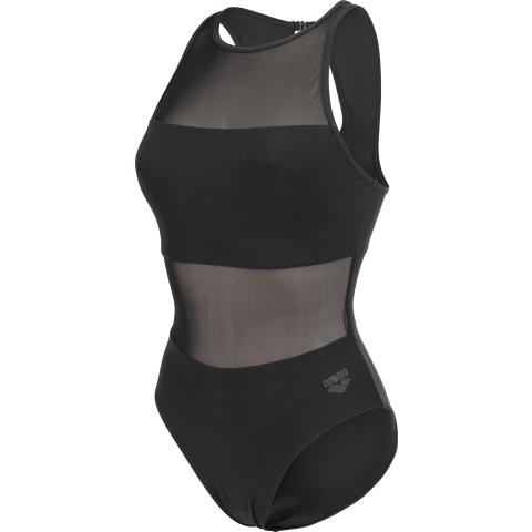 Hyvin istuva uimapuku naisellisilla, läpikuultavilla verkko-osioilla. Sopii niin altaalle kuin rannallekin. Korkea kaula-aukko sekä korkea selkäosa pitävät puvun hyvin paikoillaan. Niskassa solkikiinnitys. Vuorattu etuosa verkko-osioita lukuun ottamatta.