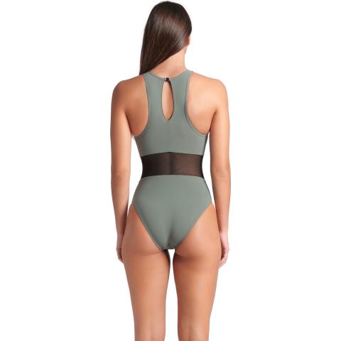 Hyvin istuva uimapuku naisellisilla, läpikuultavilla verkko-osioilla. Sopii niin altaalle kuin rannallekin. Korkea kaula-aukko sekä korkea selkäosa pitävät puvun hyvin paikoillaan. Niskassa solkikiinnitys. Vuorattu etuosa verkko-osioita lukuun ottamatta.