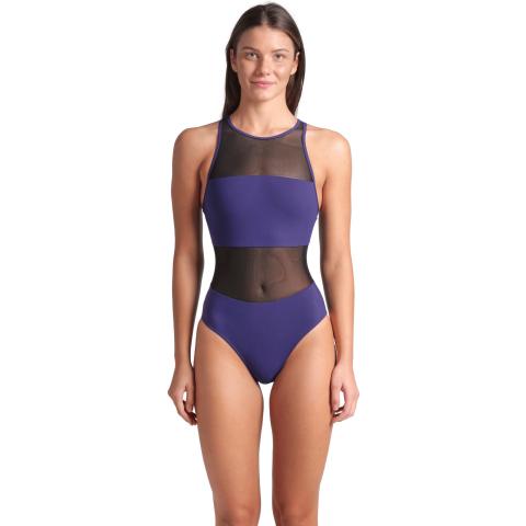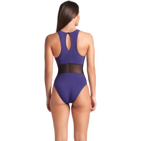 Hyvin istuva uimapuku naisellisilla, läpikuultavilla verkko-osioilla. Sopii niin altaalle kuin rannallekin. Korkea kaula-aukko sekä korkea selkäosa pitävät puvun hyvin paikoillaan. Niskassa solkikiinnitys. Vuorattu etuosa verkko-osioita lukuun ottamatta.