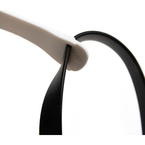 - puolipitkät, kiinteät sangat pitävät lasit napakasti paikallaan