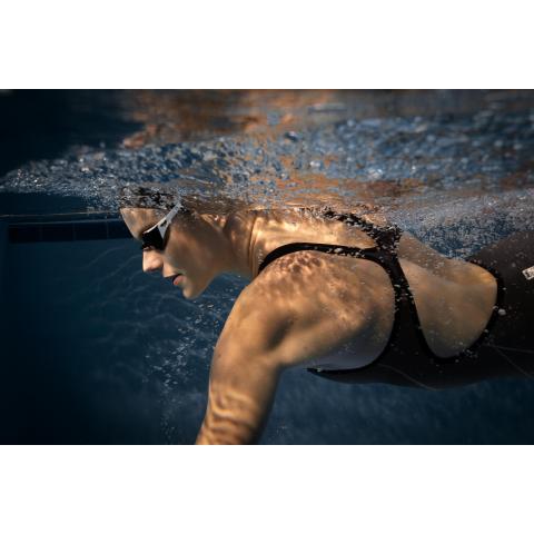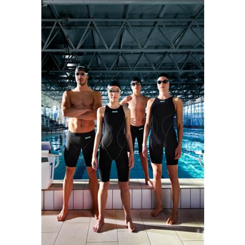 Joustava puku tuntuu miellyttävältä päällä eikä rajoita liikettä. Puvun kohtalainen kompressio tukee lihaksia ja parantaa uimarin hydrodynaamista uintiasentoa vedessä.