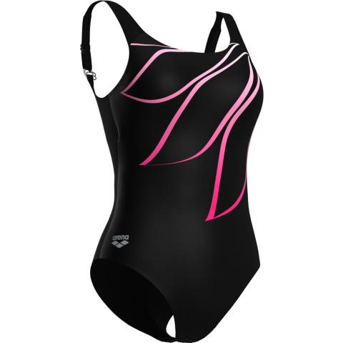 Pehmeät, muotoillut kupit sekä leveä kuminauha rintojen alla tukevat povea. Säädettävät olkaimet parantavat puvun istuvuutta. Tukeva, neliönmallinen selkäosa. Uimapuvussa on kevyesti vatsaa litistävä kangas.