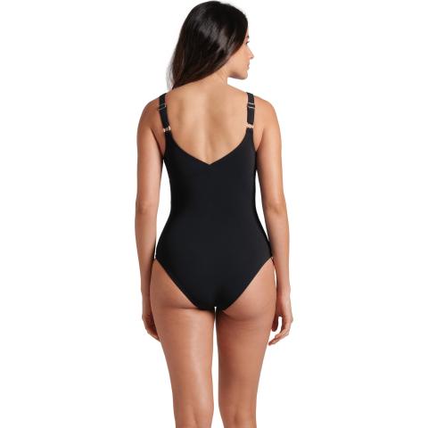 Uimapuvussa on kaksinkertainen kangas sekä kevyesti vatsaa litistävä verkkorakenne. Pehmeä, tilavampi liiviosa sekä leveä kuminauha rintojen alla kohottavat ja tukevat povea. Uimapuvun säädettävät olkaimet sekä umpinainen, hieman uurrettu selkäosa parantavat puvun istuvuutta. Jalanteiden reunassa ei ole napakkaa tikkausta, vaan kevyt piilotikkaus kankaan sisällä tekee jalanteistä miellyttävän saumattomat.