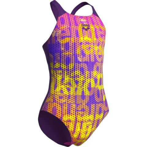 Tyttöjen värikäs Performance-sarjan uimapuku. Leveät ja tukevat olkaimet. V-selkäosa. Vuorikangas edessä*