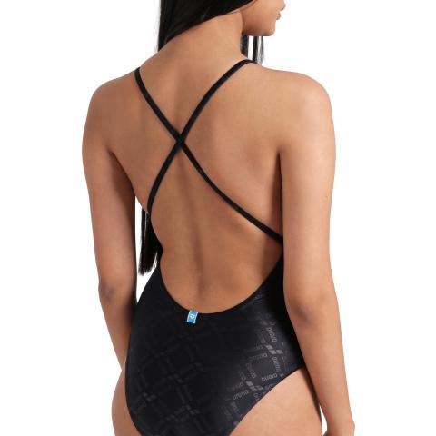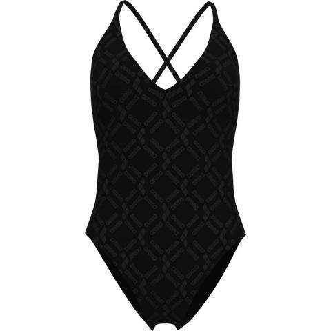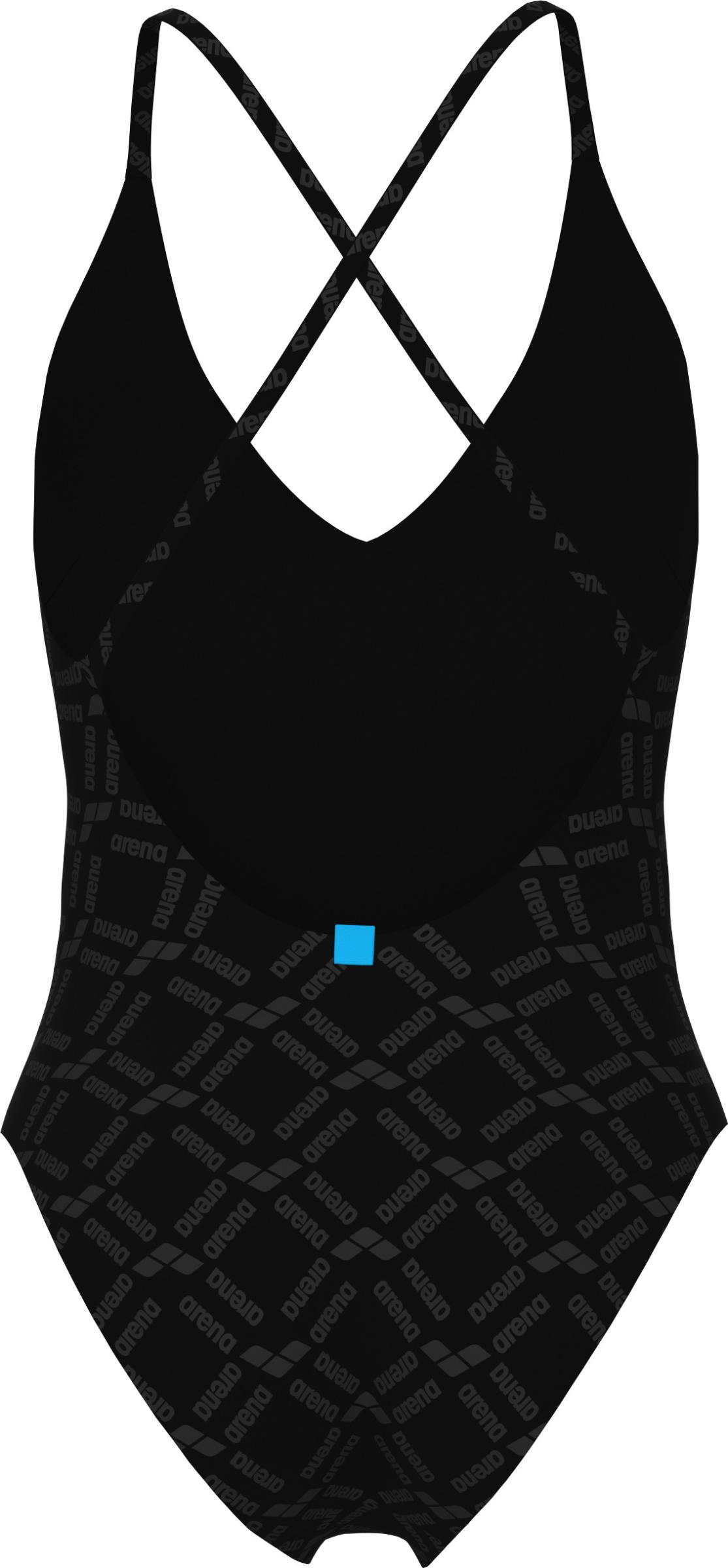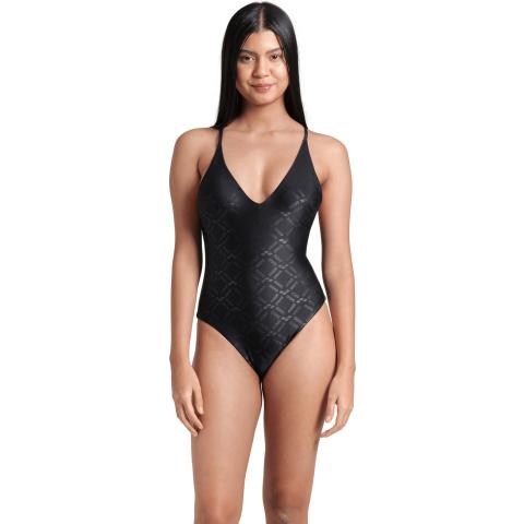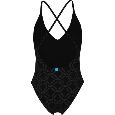 Uimapuvussa on tyylikäs V-mallinen kaula-aukko sekä kevyesti topatut, irrotettavat kupit. Kuminauha rintojen alla antaa kevyen tuen. Puvussa on avoin, syvään uurrettu selkäosa sekä sirot, ristikkäiset olkaimet. Puku on kokonaan vuorattu.