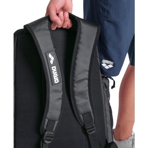 Kompakti ja käytännöllinen reppu, jossa on hengittävä lokero uintivarusteille sekä vahvistettu pohja märkiä lattioita varten. Kaksi tilavaa lokeroa pitkillä vetoketjuilla, pienempi vetoketjullinen tasku pientarvikkeille sekä verkkotaskut sivuilla. Pehmustettu, hengittävä selkäosa ja ergonomiset olkaviilekkeet tekevät repusta mukavan kantaa.