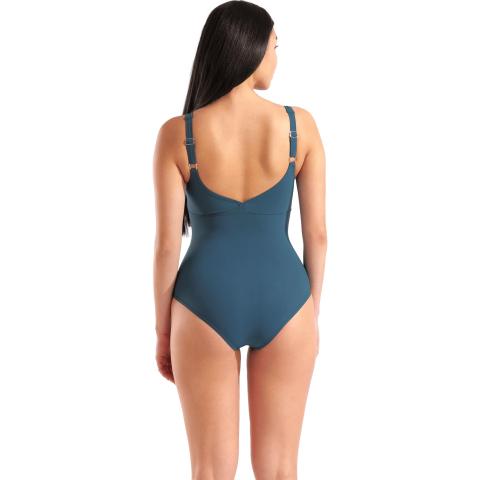 Klassinen Shapewear-uimapuku Sensitive Fit -kankaalla ja Wing Back-selkäosalla. Shapewear-malliston uimapuvut muotoilevat ja antavat vartalolle miellyttävän napakan tuen. Uintiin, vesijuoksuun ja -jumppaan suunnitellut uimapuvut, sopivat niin altaalle kuin rannallekin. Tilavampi, erillinen liiviosa sekä leveä kuminauha rintojen alla tukevat povea. Leveät, säädettävät olkaimet ja umpinainen, hieman uurrettu selkäosa parantavat puvun istuvuutta. Uimapuvussa on kevyesti vatsaa litistävä kangas. Sensitive Fit on joustavaa ja nopeasti kuivuvaa kierrätyskangasta, joka tuntuu miellyttävältä päällä. Kankaan parannettu kloorin ja UV-säteilyn kesto säilyttää värit kirkkaina ja pidentää puvun käyttöikää. Sensitive Fit valmistetaan kierrätetystä nailonista. Kierrätysmateriaalin käyttö vähentää tuotannon energian kulutusta, pienentää päästöjä ja säästää vettä. Kankaalla on STANDARD 100 by OEKO-TEX® -sertifikaatti, joka kertoo tuotteen turvallisuudesta. Uimapuku on ihoystävällinen, siinä ei tutkitusti ole haitta-aineita ja tuotteissa käytetyt väriaineet ovat myrkyttömiä. - Classic Bra -liiviosa, B-kuppi - Säädettävät olkaimet - Wing Back -selkäosa - Sensitive Fit-kangas: 68 % kierrätettyä polyamidia, 32 % elastaania - Kloorinkestävä - UPF 50+ aurinkosuoja Pesuohje: Käsinpesu, ei rumpukuivausta. Huuhtele uima-asu viileällä vedellä heti käytön jälkeen. Pese kloori ja lika pois miedolla nestemäisellä pesuaineella. Anna kuivua luonnollisesti.