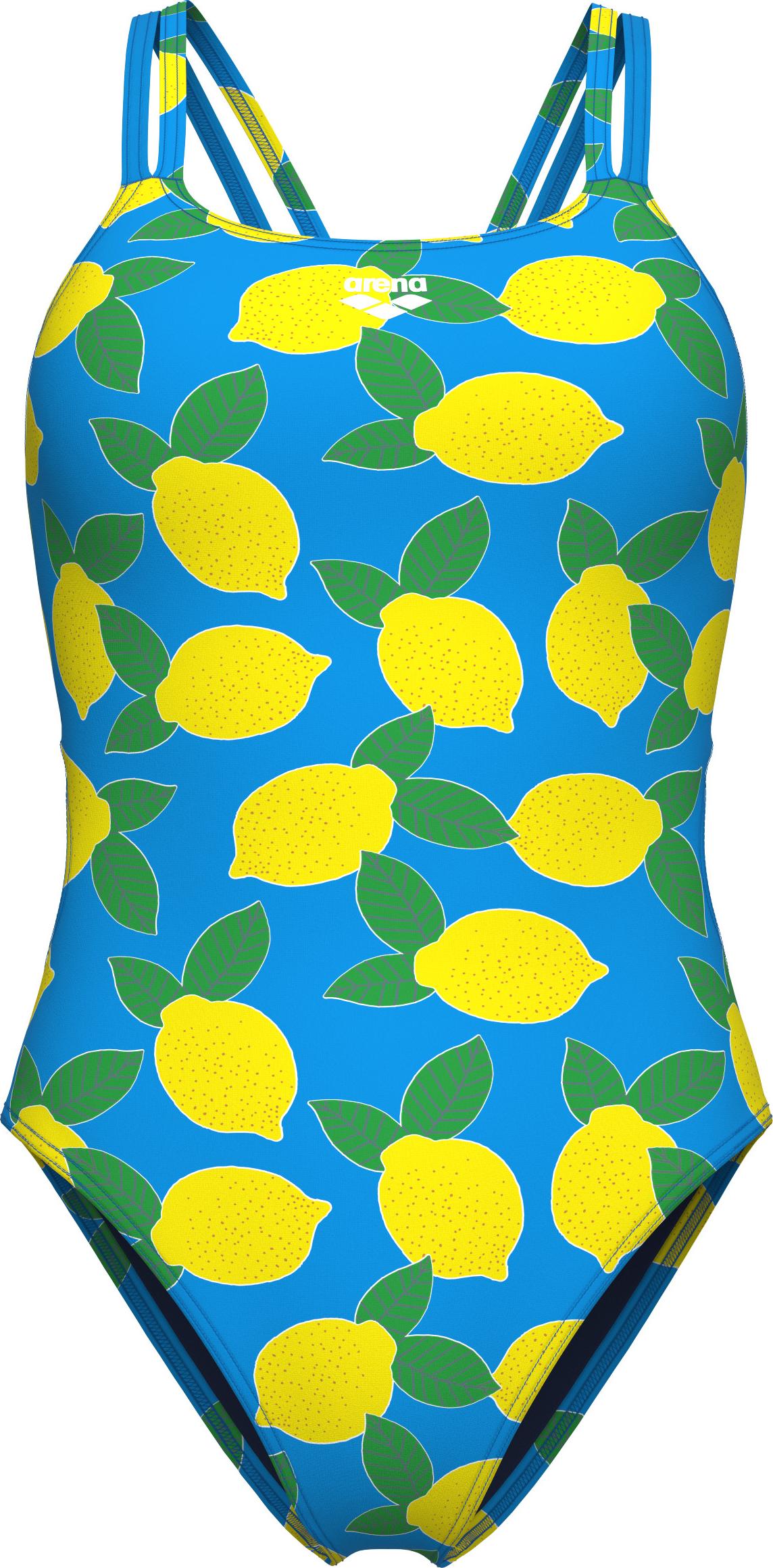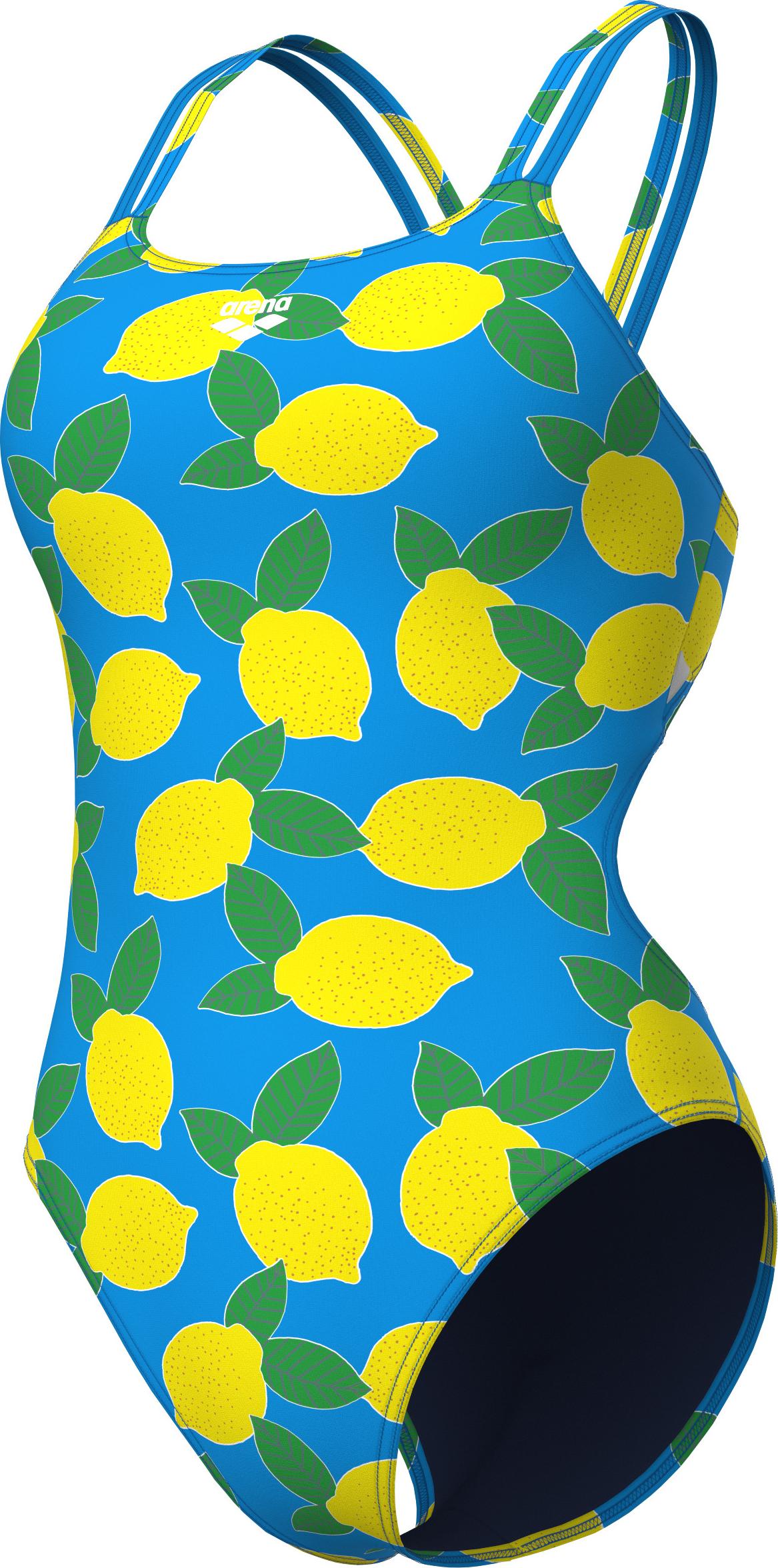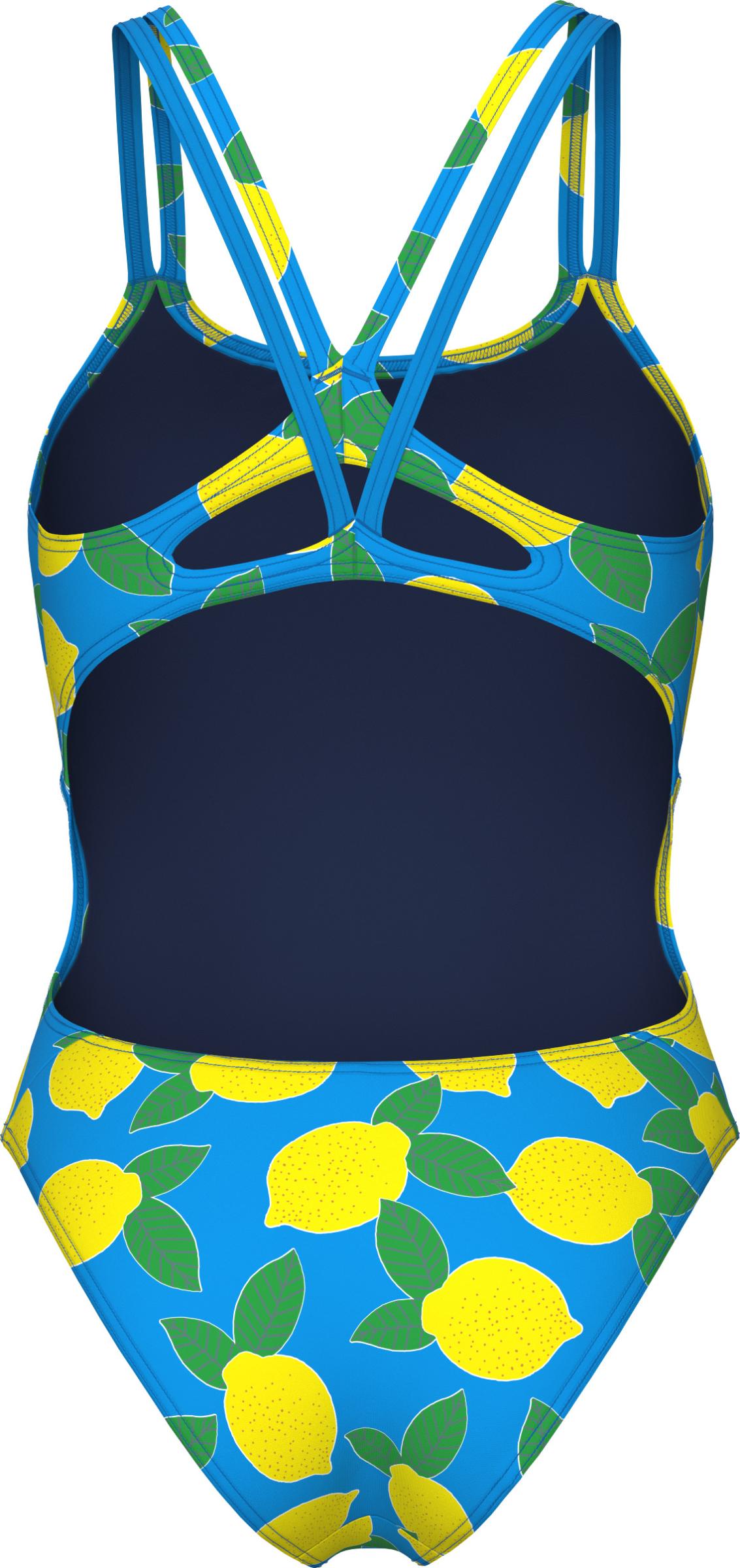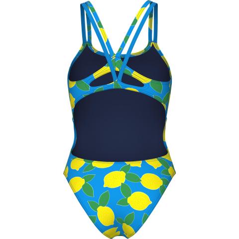 Sporttinen W Lemons Lace Plus Back -uimapuku aktiiviuimareille kestävästä Maxlife Eco -kankaasta. Kokoprintti sitruunakuviolla on Limited Edition- sarja.