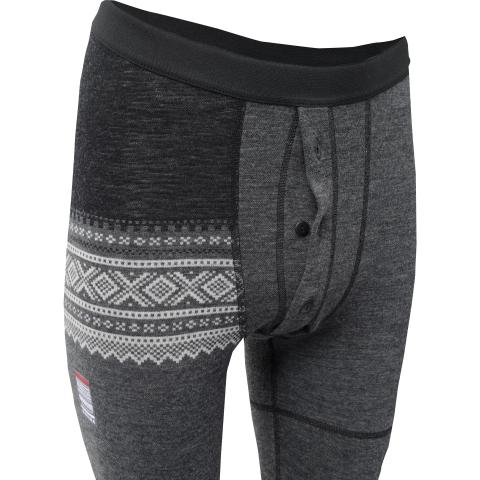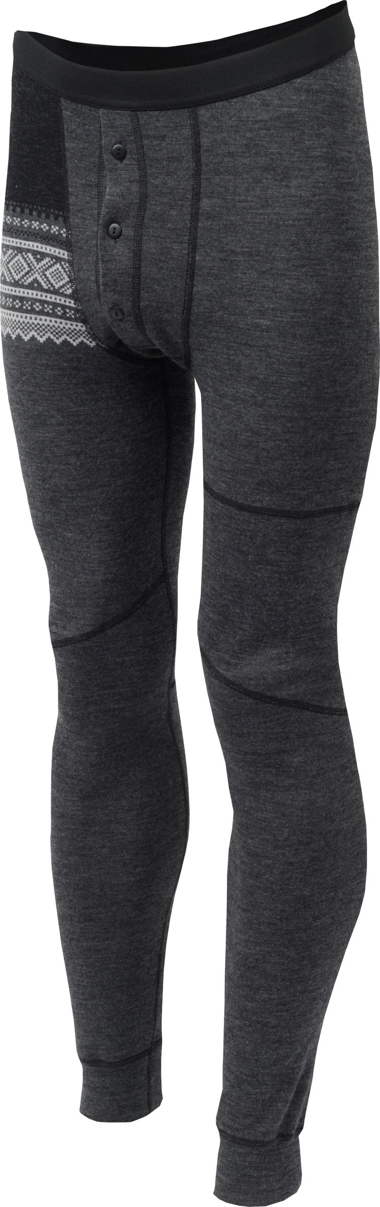 Acliman Designwool-sarjaan kuuluvat pitkät alushousut. Lämpimät housut ovat keskivahvan Warmwool-sarjan pehmeää 200g/m² merinovillaa. Sepaluksessa napit.
