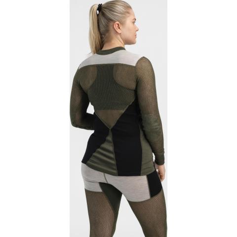 Naisten päivitetty merinovillapaita, joka yhdistää toimivasti merinovillaverkkoa ja tavallista 200m/m² merinovillakangasta.