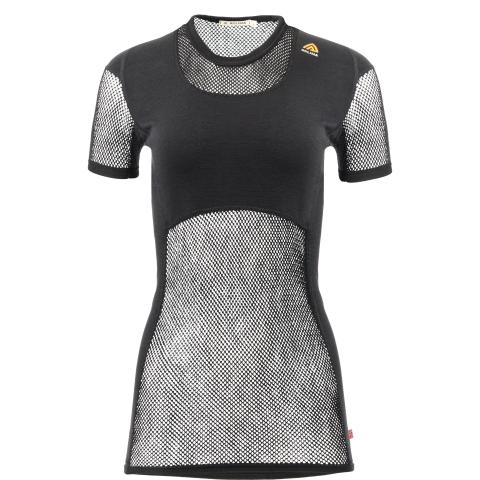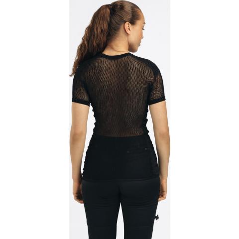 Naisten ainutlaatuinen lyhythihainen verkkoaluspaita. Lämpötilan hallinnan ja mukavuuden kannalta luonnonkuitujen yhdistäminen tekokuituihin on ylivoimaisen hyvä ratkaisu. WoolNet-rakenne, jossa käytetään pehmeää merinovillaa, on aina sopivan lämpöinen ja erittäin hyvin hengittävä. Kuitu imee jopa 30 % kosteutta itseensä, ennen kuin se alkaa tuntua märältä.