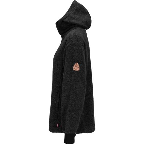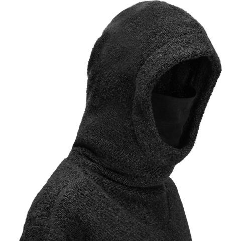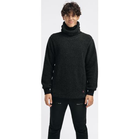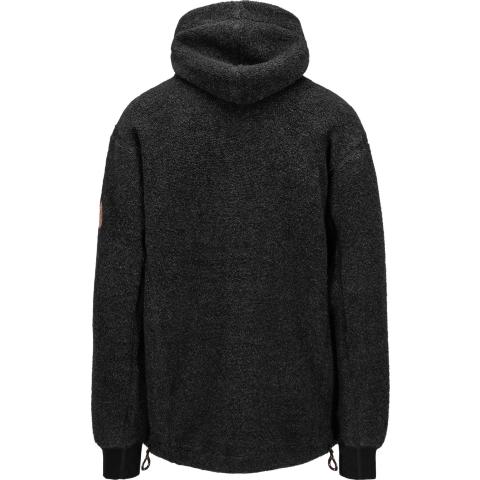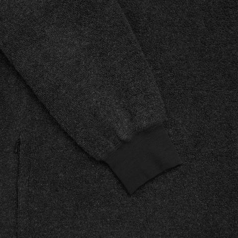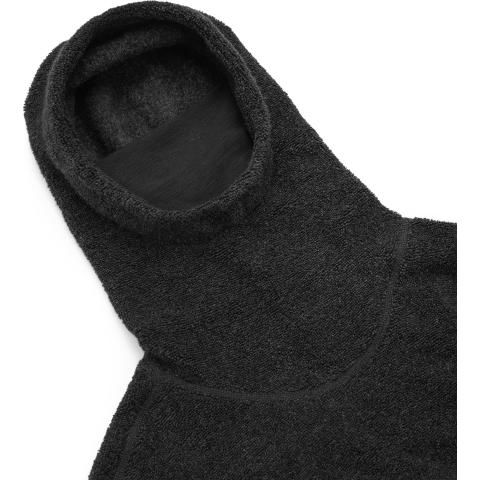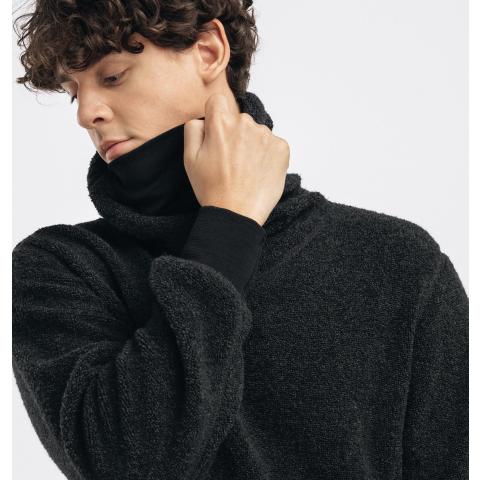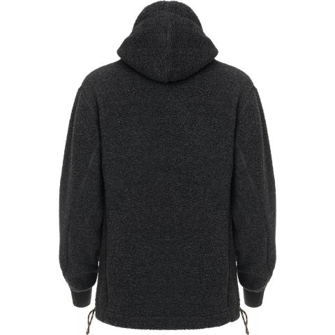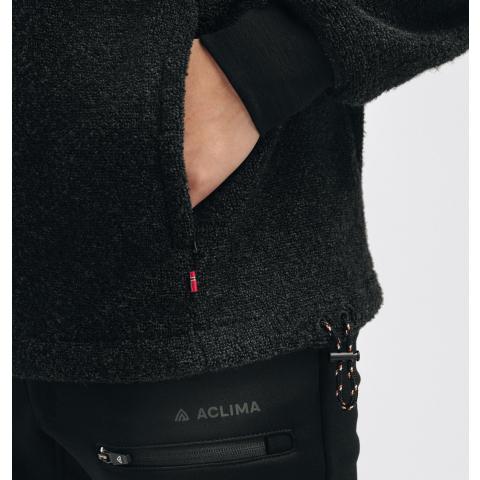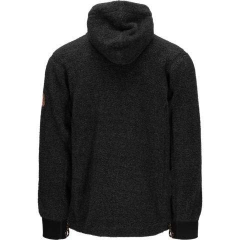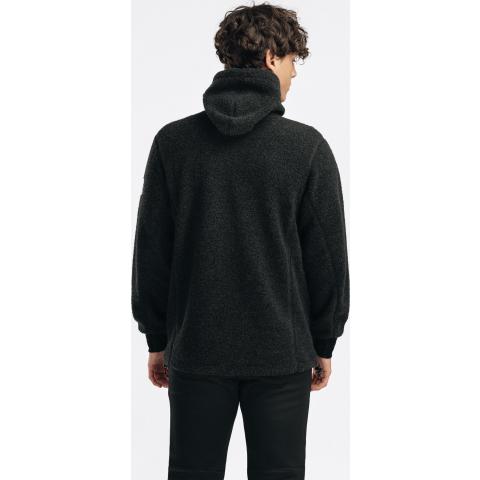 ReBorn Wool Terry on 62% kierrätettyä merinovillaa, 23% kierrätettyä polyamidia, 12% kierrätettyä polyesteria ja 3% muita kuituja. Kankaan ulkopinnan lenkit tekevät ilma-aukkoja ja tuovat erinomaista eristystä esim välikerroksena käytettäessä. Sisäpinta on kevyesti harjattua ja hyvin pehmeää. Vetoketju on kierrätetty ja vetimet sekä logomerkki ovat tehty kalannahasta.