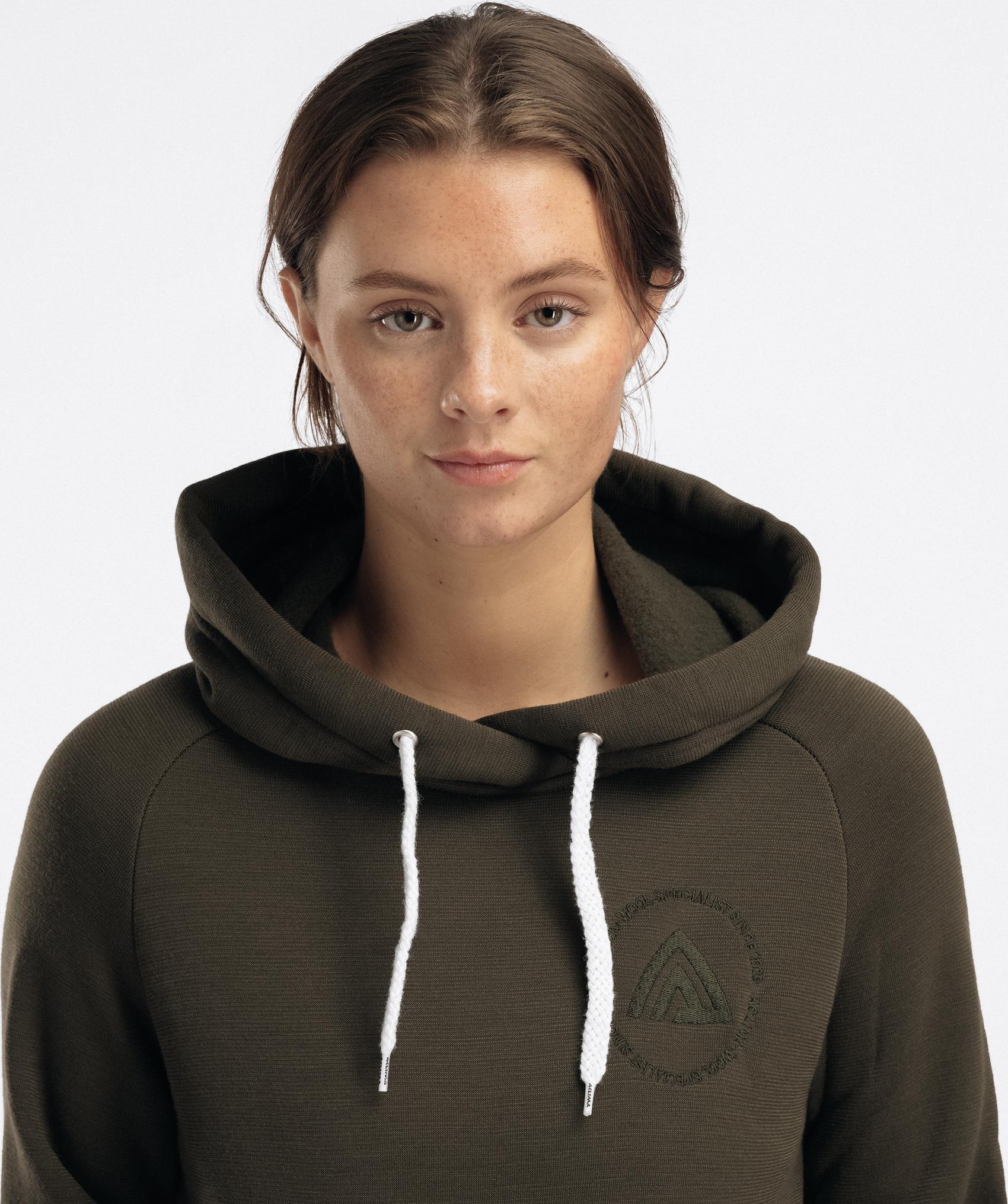 Naisten rento, äärimmäisen mukava, joustava ja lämmin villafleece- huppari. Sisäpuoli todella pehmeää harjattua villafleeceä. Logo rinnassa ja teksti Aclima, wool specialist since 1939. Huppu ja kengurutasku sekä nauhat hupun reunassa.