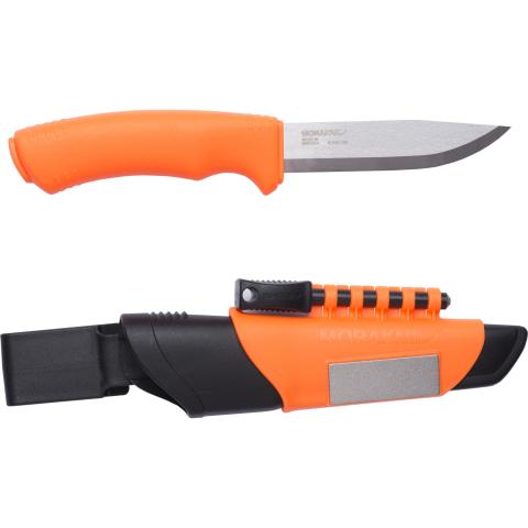 Uusi, ultimaattinen luonnossa liikkujan monitoimipuukko. Todellinen Must-have varuste, joka istuu vaativaan elämäntyyliin. Samassa kokonaisuudessa huippuluokan puukko, tulukset ja timanttiteroitin. Poikkeuksellisen paksu (3,2mm) terä tekee tästä yhden kestävimmistä Mora of Sweden Ab:n koskaan valmistamista veitsistä. Huomioväri helpottaa löytämistä pimeässä. Terän hamarapuoli erikoishiottu toimimaan parhaalla mahdollisella tavalla tulustikun kanssa. Soveltuu monipuoliseen, vaativaan käyttöön: pelastustyöhön, metsästykseen, kalastukseen, veneilyyn ja retkeilyyn. Kirkkaan oranssi pikairroitettava tuppi on varustettu kahdella vaihdettavalla vyökiinnikkeellä: Vyöhön ylhäältä painettava avoin pikakiinnike sekä umpinainen lenkki, johon vyö pujotetaan.