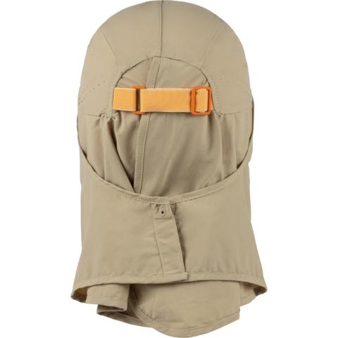 Lippiksen 360° kangas suojaa niskaa ja kaulaa poikkeuksellisen hyvin auringolta. Kaksiosainen, lomittainen suojus parantaa ilman kiertoa kankaan alla. Kankaan voi pitää edestä kiinni tai napsauttaa nepparilla lippiksen taakse, jolloin aurinkosuoja on takana ja sivuilla. Kankaan voi myös rullata kokonaan ylös lippisen taa tai taittaa lakin alle piiloon.