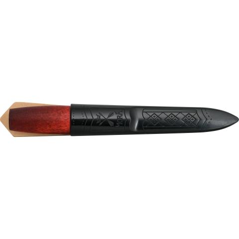 Klassinen puukahvainen erittäin terävä yleispuukko keskilyhyellä terällä. Luotettava työkalu, joka soveltuu monipuoliseen yleiskäyttöön: kotiin, mökille, harrastajille ja ammattilaisille. Ergonominen kahva okran punertavaksi petsattua koivua. Tämä kahva tunnetaan siitä, että sen kanssa on miellyttävää tehdä töitä ja se tarjoaa juuri oikean fiiliksen: kahva mahdollistaa voiman käytön, tarkkuuden ja puukon täsmällisen käytön, mikä jatkuvassa käytössä ehkäisee työperäisiä rasitusvammoja.