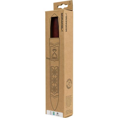 Terän materiaali runsashiilinen teräs. eli terä on helppo teroittaa. Kokonaispituus: 250 mm. Terän pituus: 106 mm. Terän paksuus: 2,5 mm. Kokonaispaino 162 g. Veitsen paino 100 g. Polymeerituppi nahkalenkillä sis. toimitukseen. Materiaali- ja valmistusvirhetakuu 10 vuotta. Valmistusmaa Ruotsi.