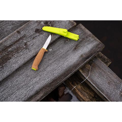 Korkista valmistettu kahva, jonka pinta tarjoaa miellyttävän otteen myös kylmissä oloissa. Terän materiaali kylmävalssattu ruotsalainen ruostumaton Sandvik erikoisteräs, eli pysyy erittäin terävänä pitkään. Kokonaispituus: 235 mm. Terän pituus: 97 mm. Terän paksuus: 1,4 mm. Puukon paino 79 g. Muovitupen pohjassa tyhjennysreikä ja ylhäällä vyökiinnike, jossa kiinnitysmahdollisuus myös nappiin. Tupen voi myös kiinnittää reppuun, pelastusliiveihin, tai liittää suoraan kaikkien Morakniv Combi Sheath tuppien kylkeen, jolloin kaksi työpuukkoa kulkee yhdessä mukana. Tupen materiaali: Polymer Edge Protect.