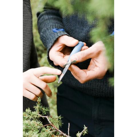 Terän materiaali kierrätetty kylmävalssattu ruotsalainen ruostumaton erikoisteräs. Pysyy erittäin terävänä pitkään. Uudenlainen puristusholkki ruostumatonta terästä, joka parantaa laatua ja kestävyyttä. Kahva ympäristöystävällisellä maalilla maalattua koivua. Kokonaispituus: 180 mm. Terän pituus: 86 mm. Terän paksuus: 2,0 mm. Kokonaispaino 78 g (puukko 42 g).