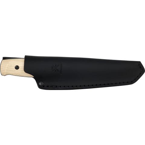 Toimitetaan piikkiin ripustettavassa kierrätetystä materiaalista valmistetussa retail -lahjapakkauksessa, jonka mitat: 28 cm x 7 cm x 4,9 cm. Pakkaukseen kuuluu: Puukko ja nahkatuppi.