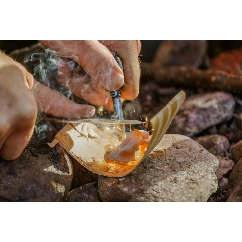Käsityönä valmistettu full tang eräpuukko, joka on suunniteltu toimimaan kaikissa olosuhteissa. Vahva, paksuteräinen ja monipuolinen malli, joka on suunniteltu toimimaan luotettavana ja tehokkaana työkaluna – myös kaikkein vaativimmissa erämaaolosuhteissa ja retkikuntien käytössä. Mainio väline myös erätaitojen jalostamiseen. Toimitetaan kasvivärjätyn nahkatupen kanssa, joka suojaa veitsen terää huolellisesti.