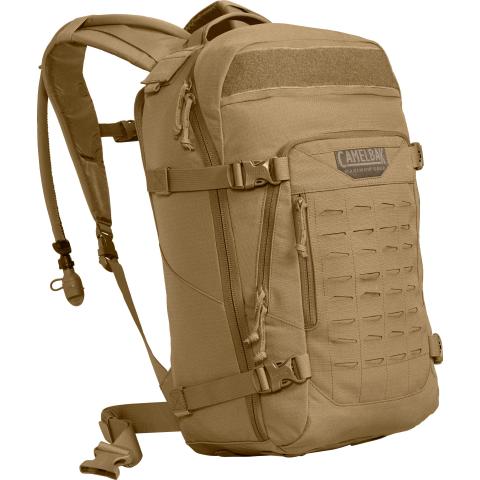 Taktiseen käyttöön suunniteltu tilava CamelBak Mil Spec juomareppu. Soveltuu 1-2 päivää kestäviin tehtäviin. Kantojärjestelmä ilmastoidulla Air Director selkäpaneelilla ja kevennetyllä lantiovyöllä on erittäin mukava. Lantiovyö voidaan syöttää kokonaan repun rakenteen sisään, kun sitä ei haluta käyttää. Kevyt kokonaisuus toimii tehokkaasti mahdollistaen pitkäaikaisen yhtäjaksoisen toimimisen kaikkein vaativimmissakin olosuhteissa. Repusta pääsee nopeasti irti pikasoljellisten olkaviilekkeiden ja lantiovyön ansiosta. Kompressiohihnat pitävät repun tiiviinä pakettina selässä. Repun painopiste alempana Low Rider™ juomasäiliön taskun ansioista. Sisältää matalaprofiilisen Mil Spec Crux™ Lumbar juomasäiliön ja eristetyn juomaletkun sulkuventtiilillä, QuickLink liittimillä ja suukappaleen suojuksella. Letku voidaan irrottaa pikaliittimellä suukappaleesta ja liittää suoraan kaasunaamariin.