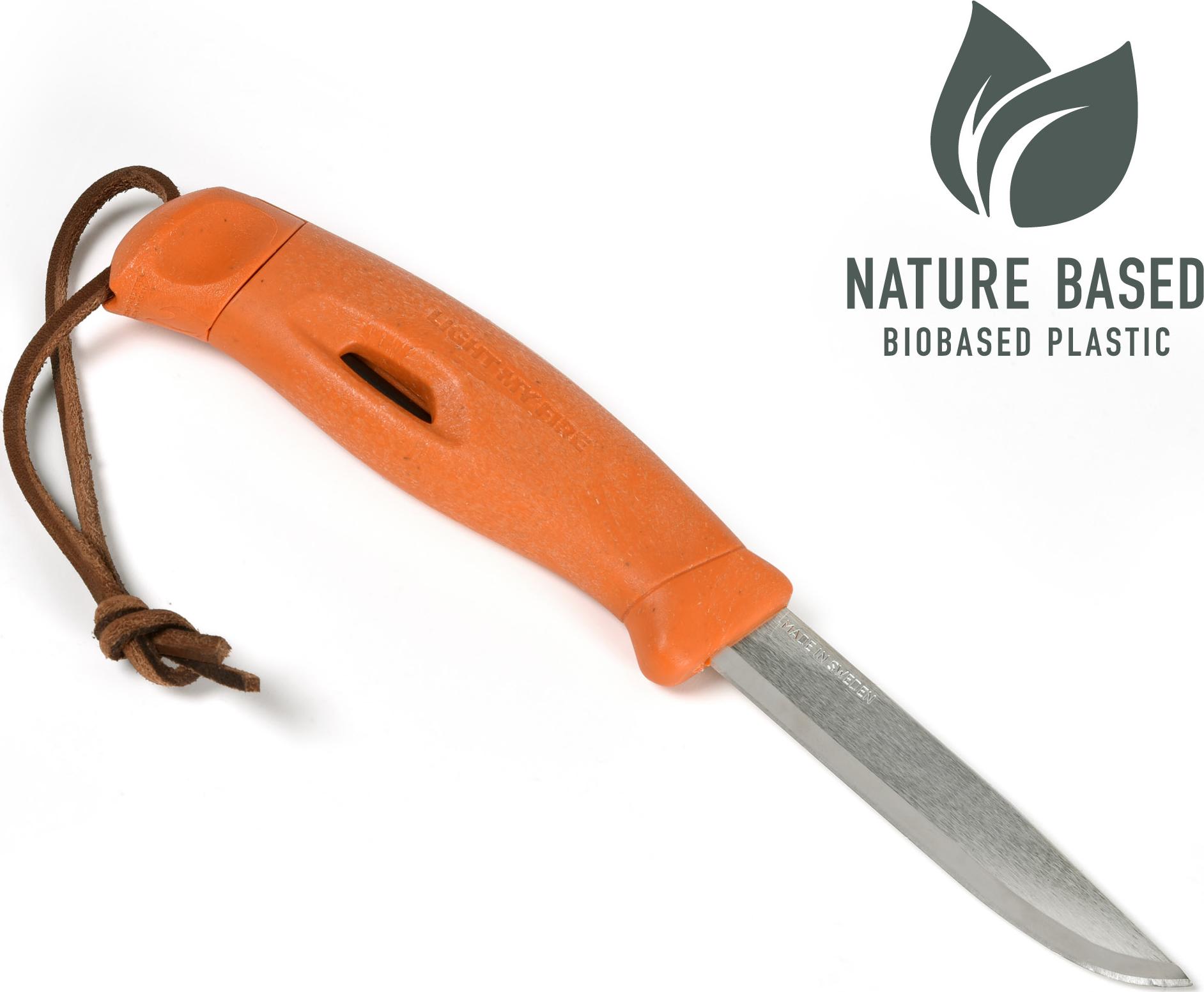 Käteen erinomaisesti istuva puukko, jonka kahvassa alkuperäinen Light My FIre FireSteel tulustikku. Kahvan ja tupen materiaali on Terralene HDPE elastomeeri, 100 % kierrätettävä ja BPA-vapaa. Materiaalista 96 % on sokeriruo'osta ja puukuidusta valmistettua biopohjaista muovia, joka on Bonsucro ja ISCC sertifioitu.