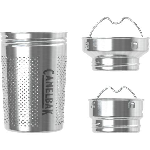 Hauduta teesi myös liikkeellä! Tea Infuser on täydellinen lisä eristettyihin mukeihin ja pulloihin. Suuri haudutuskori on tarpeeksi suuri hauduttaaksesi mieluisimman irtolehtiteesi tai kahvisi. Tai käytä Infuseria infusion juoman tekemiseen laittamalla koriin tuoreita hedelmiä ja yrttejä. Tarkkaan hitsattu reikäkuviointi pitää pienet ainesosat sisällään ja poissa itse juomastasi. Materiaali kestävää 18/8 ruostumatonta terästä. Haudutuskori ja lisäosat ovat pesukoneen kestäviä ja BPA, BPS, and BPF vapaita. Tea Infuser sopii seuraaviin CamelBakin ruostumattomasta teräksestä tehtyihin pulloihin: Forge® Flow, Chute® Mag, Hot Cap, MultiBev™, Carry Cap.