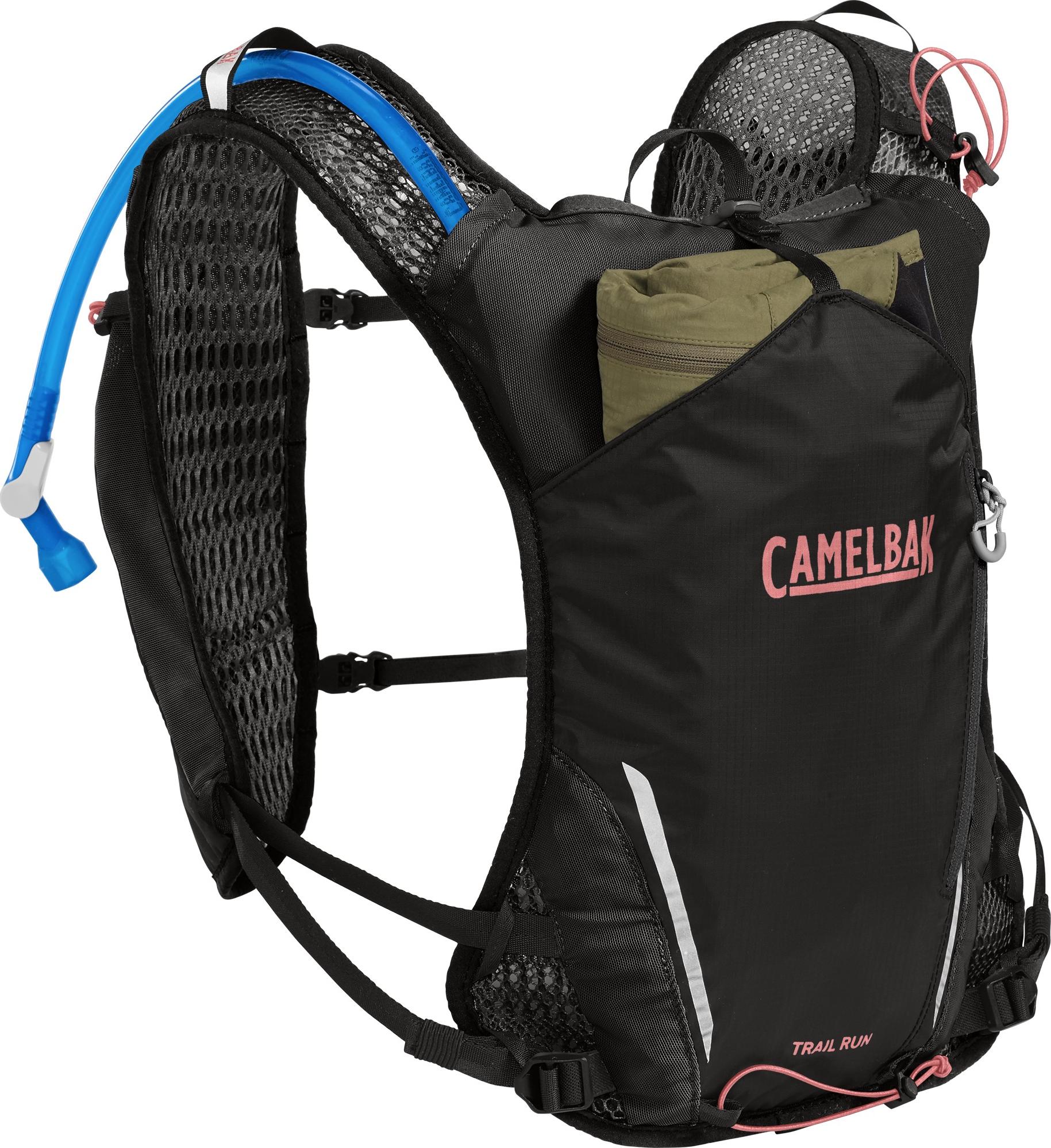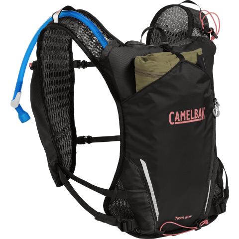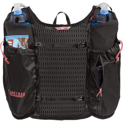 Naisten Trail Run Vest on erityisesti polkujuoksuun suunniteltu liivi, mukana tulevat kaksi 0,5l pehmeää juomapulloa.