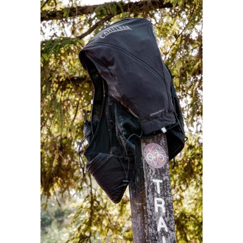 Liivi on suunniteltu ultrakevyeksi ja mallin istuvuus on huippuluokkaa, jolloin se pysyy paikallaan vauhdikkaammassakin kisassa. Etupuolella on kaksi joustavaa taskua CamelBak Quick Stow 0,5L pulloille (sis.), jolloin juoksijalla on mahdollisuus varata toinen pullo vaikka urheilujuomalle ja toinen vedelle.