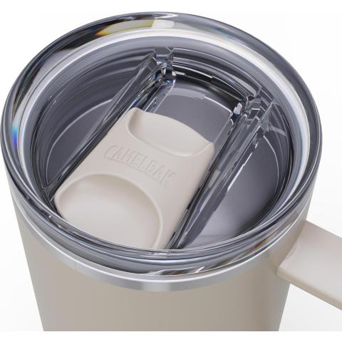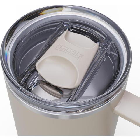 Valmistettu materiaaleista, jotka eivät aiheuta hajuja tai makuja sisältöön, eivätkä myöskään tyhjään mukiin. Liukuva kansi, jossa kolme eri asentoa: Kiinni, raollaan tai isommalle kulaukselle. Silikonipohja pitää mukin hyvin paikoillaan ja suuri kahva helpottaa juomista ja kantamista.