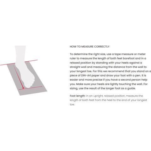 Saatavilla koot: 27-38. Suosittelemme sovittamista sovitusohjeiden mukaisesti (piirtämällä jalkaterän ääriviivat paperille ja mittaamalla pituus; ohjeet tulostettavissa)